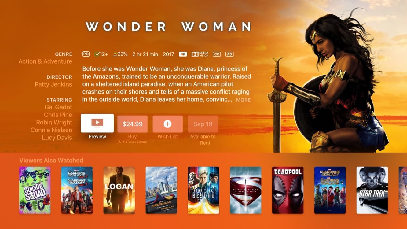 In addition to selling content in 4K for the same price as other HD content, Apple has promised that users who have previously purchased HD versions of titles that are now available in 4K will be able to download or stream the 4K version at no additional cost.