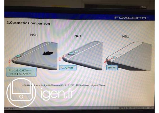 An alleged leak from a Foxconn factory has seemingly revealed the dimensions of both new iPhone 6 models. The information, posted by iGen.fr, suggests that the 5.5” iPhone 6 will be approximately 158 mm (6.2”) long, 78 mm (3.1”) wide, and 7.1 mm (.28”) thick — 7.77 mm (.31”) thick at the protruding camera lens.