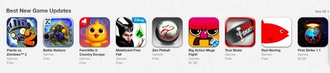 Apple has added a new section to its App Store for Best New Game Updates. The section reveals a list of newly updated titles, which often were previously featured in the Best New Games section — that section should now only feature brand new titles.