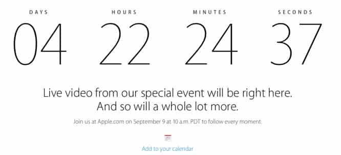 Apple has announced that it will live stream its September 9 event. The company’s website now has a “live” page featuring a countdown clock to the time of the event.