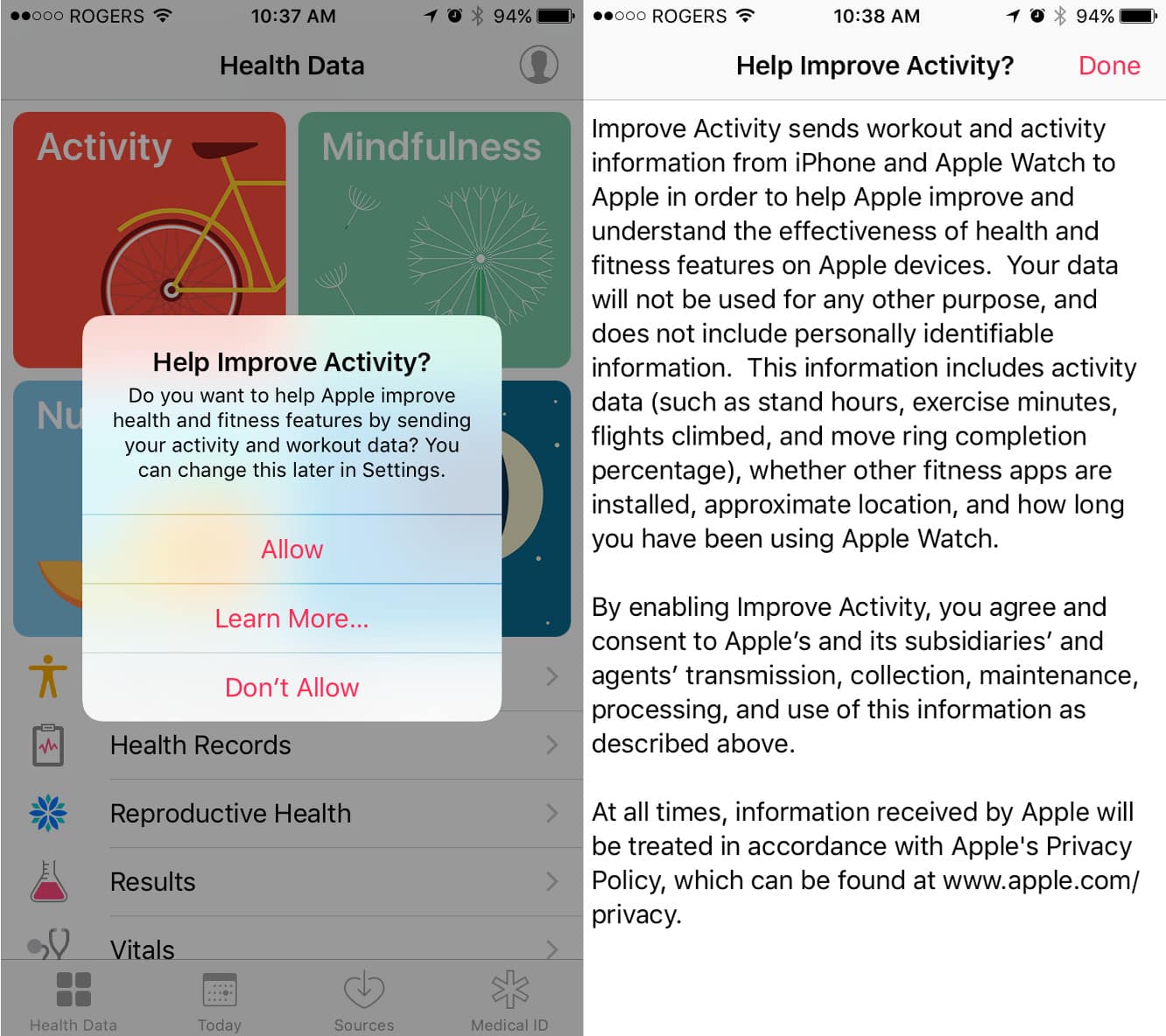 If a user opts in, Apple will gain access to workout and activity information from their iPhone and Apple Watch, which the company says will be used to “understand the effectiveness of health and fitness features on Apple devices.” Apple claims the data won’t be used for any other purpose and that it won’t include any personally identifiable information.