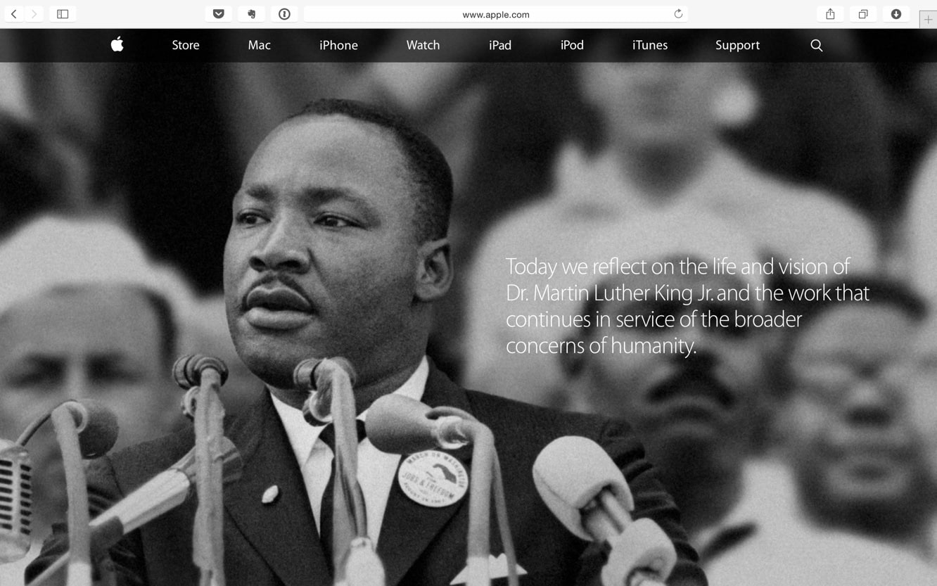 Martin Luther King, Jr. #MLK Apple http://t.co/ngqL0bym8y — Tim Cook (@tim_cook) January 19, 2015