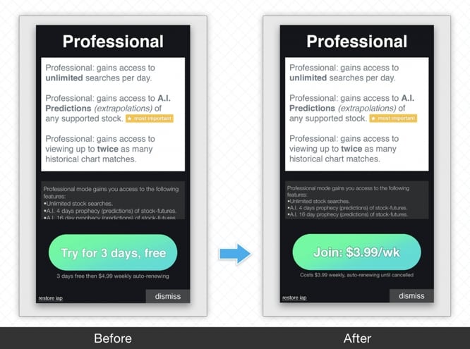 People don’t read the fine print and that’s who they’re after. Before they were lenient but with the negative publicity they’re strict as hell now.” While legitimate apps that offer real value are now being caught up in Apple’s new crackdown, the move is forcing developers to be more transparent to users about the fact that free trials will automatically charge the customers at the end of the trial — something that many iOS users may not be aware of.