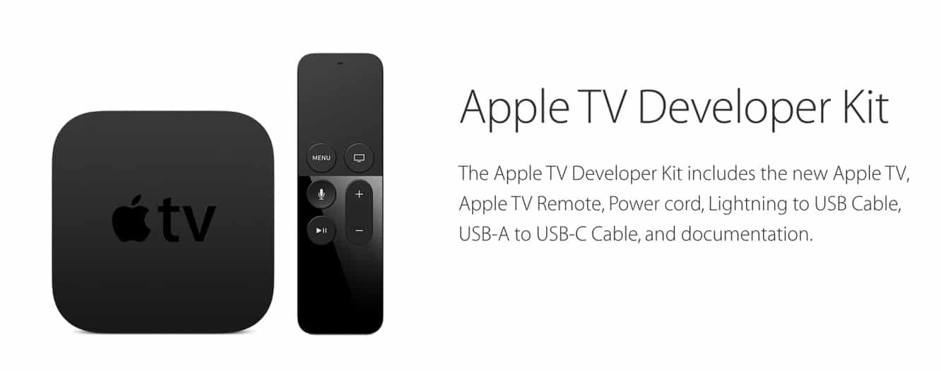 The kit includes the new Apple TV, Apple TV Remote, Power cord, Lightning to USB Cable, USB-A to USB-C Cable, and documentation. Apple notes that due to limited availability, priority will be given to teams that already have apps on the App Store, and developers will be notified of whether or not they have been selected beginning on Sept. 14.