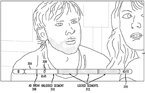 According to the patent, segments past the next scheduled ad break could be locked until the user watches the set of ads related to that segment; the ads could be bundled separately from the media itself, and could be removed from the content stream upon reaching a set expiration date. As with all Apple patents, this filing does not necessarily represent any future product release from Apple, but offers evidence of the company’s research in this area.