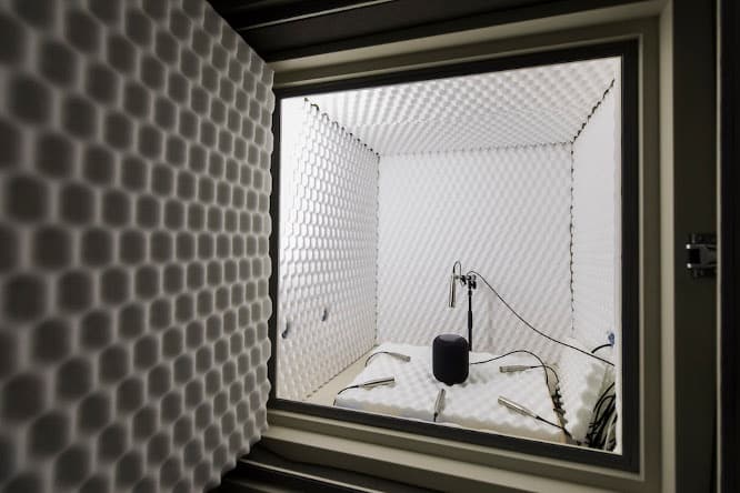 The team’s gear is also second to none, including one of the largest anechoic chambers in the United States to lock out all of the vibrations from outside while testing. Inside the room — built inside another room on isolating springs — the HomePod was monitored for how it sounded in all directions, which Greaves called “a critical component of why HomePod works like it does and enables the system to adapt to the environments the system is placed in.” Then Apple went into hundreds of employees’ own rooms to take measurements for how they conducted and absorbed sound. In another chamber, engineers figured out how to let Siri hear requests amid all the audio chaos coming from other sources and the HomePod itself in a party situation.
