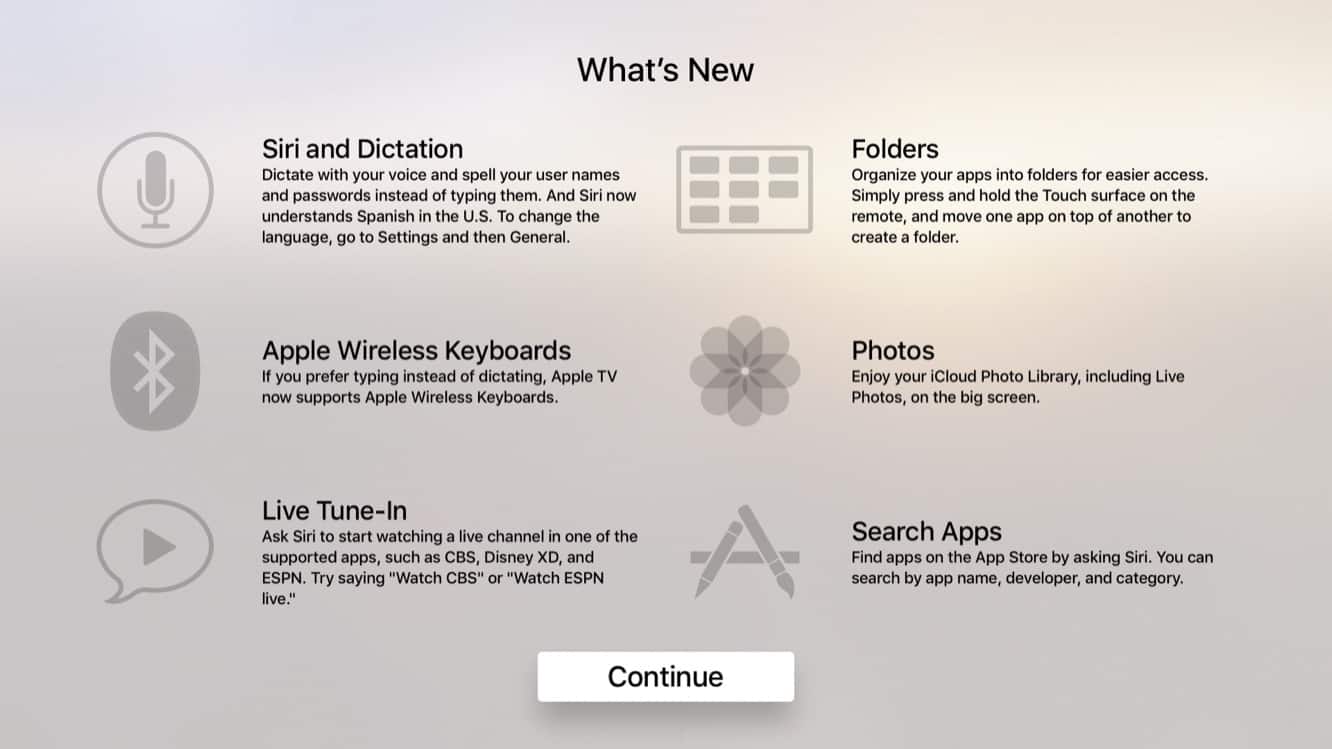 who select Settings, System, What’s New can now see the feature has been added to the list of tvOS 9.2 features, highlighting the ability to issue Siri commands such as “Watch CBS” or “Watch ESPN live.” Thus far, Apple only lists CBS, ESPN, and Disney XD as examples of the feature, and it’s unclear whether third-party app developers have to explicitly add support for this feature going forward and which other apps may already include these capabilities. Apple’s tvOS Developer Documentation presently includes no obvious reference to hooks or APIs that would be used to enable this, suggesting that this feature may currently only be available to specific apps hand picked by Apple.