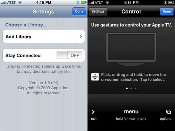 Apple has released Apple TV Software 2.4, the latest update to its HDTV-tethered media player. Notably, the new software adds expanded support for the company’s Remote application for the iPhone and iPod touch, allowing users to control the set-top box’s menus, video, and audio playback using touch-based gestures.