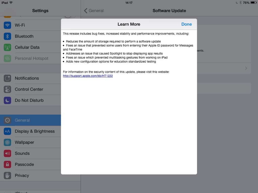 The amount of free storage space required to perform an update has also been reduced, and new configuration options have been added for education standardized testing. iOS 8.1.3 is available as an over-the-air update or by updating via iTunes on a Mac or PC.