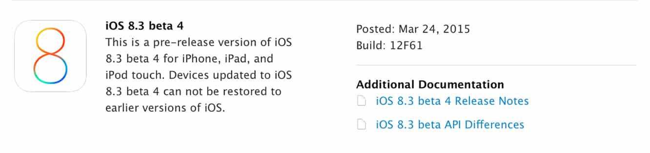 Apple has released its fourth beta of iOS 8.3 to registered developers; it’s the second beta in the new iOS Public Beta program.