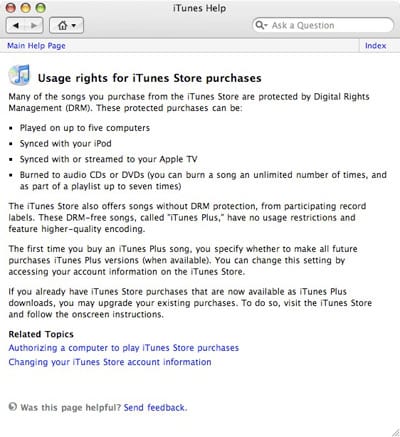In advance of Apple CEO Steve Jobs’ appearance at the D: All Things Digital Conference tomorrow in Carlsbad, California, Apple has released iTunes 7.2, an upgrade to its free digital media management software. Version 7.2 adds one feature—previously-announced support for the downloading of DRM-free songs, now dubbed “iTunes Plus,” which as noted by Apple in iTunes Help “have no usage restrictions and feature higher-quality recording.” Initially spearheaded by the music label EMI, but also backed by independent labels, the songs sell for $1.29 each and use 256Kbps AAC encoding for superior sound quality than standard iTunes Store music downloads.