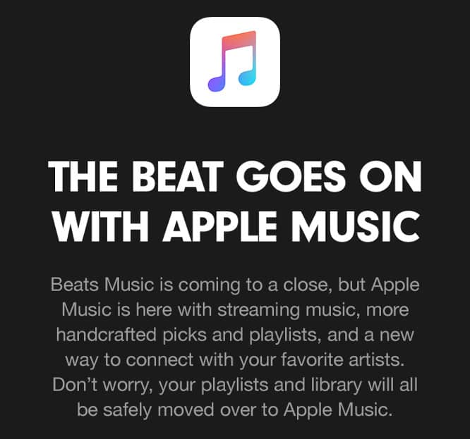Apple has been encouraging Beats Music users to switch to Apple Music since launching the new service in June, but those users still paying for Beats Music will see their subscriptions canceled at the end of the month. The “related articles” section attached to the post features links to newly updated user guides for migrating from Beats Music to Apple Music for both iOS and Android, making it possible that Apple was waiting until the Android app’s release earlier this week before finally pulling the plug on Beats Music.