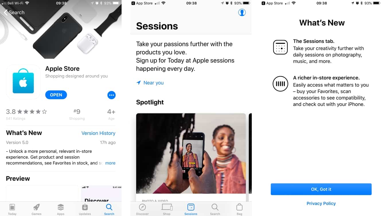 Apple has released a significant update to its Apple Store app, promising users “a more personal, relevant in-store experience” with recommendations for products and in-store training sessions. The highlight of the update is a new “Sessions” tab which allows users to more easily find daily sessions be held in local Apple Stores on creative subjects such as photography and music, and sessions can be filtered based on the products that a user already owns.