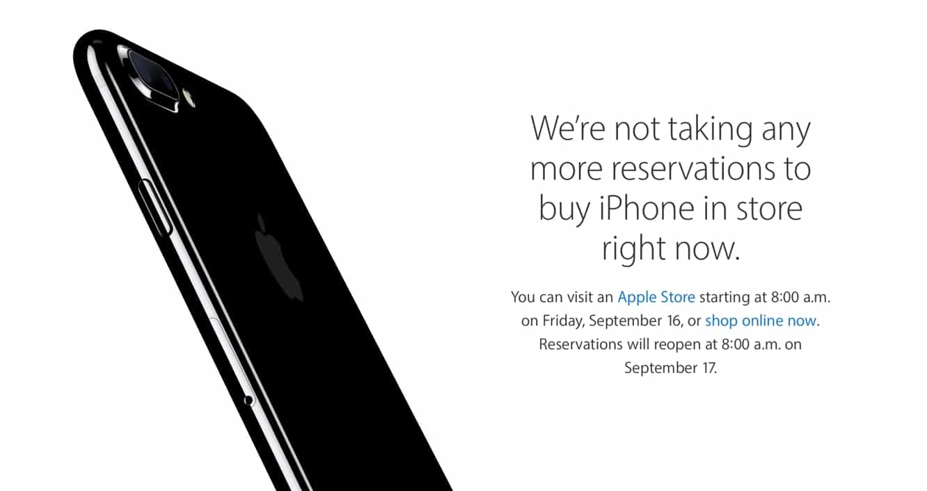 In the wake of high demand for the new iPhone 7 and iPhone 7 Plus models, Apple appears to have temporarily suspended its “Reserve and Pickup” service in the U.S., the U.K., and Italy until Sept. 17 — the day after the new iPhone models are expected to be available in Apple Stores. Reservations are now expected to open at 8 AM local time for U.S.