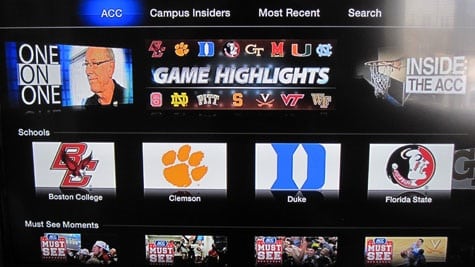 NCAA Men’s Basketball Tournament previews are also included in a Campus Insiders section. Like other recent channel additions, the ACC Sports channel appears automatically on the main page without a software update.