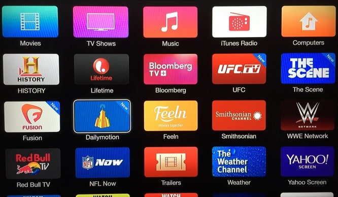 Apple TV has added four more channels to its lineup, including Dailymotion, Fusion, The Scene, and UFC.TV. For the first time, the new channel icons are now marked “New” on the Apple TV’s home screen.