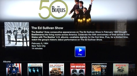 Apple has added The Beatles channel to Apple TV, celebrating the 50th anniversary of the group’s landmark appearance on The Ed Sullivan Show. For a limited time, users can watch the footage from that appearance on The Ed Sullivan Show.