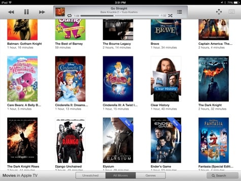 The app now boasts greater integration with Apple TV — users can now control iTunes Radio through the set-top box using the app, and you are now shown your iTunes Match music and iTunes in the Cloud music/TV show/movie content within the app, merely tapping on the screen to play it through the currently selected Apple TV.