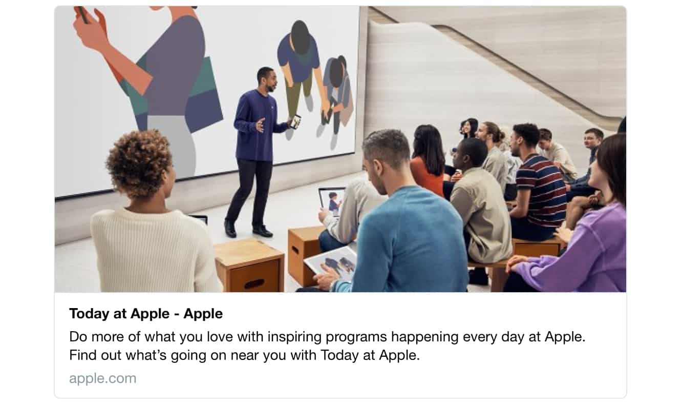 Apple rolled out its “Today at Apple” program last year as a new educational initiative that would focus on teaching a wide range of topics at Apple retail stores, ranging from local classes led by Apple employees to special sessions in select cities with “world-class artists, photographers and musicians” hosting. [via iPhone in Canada]