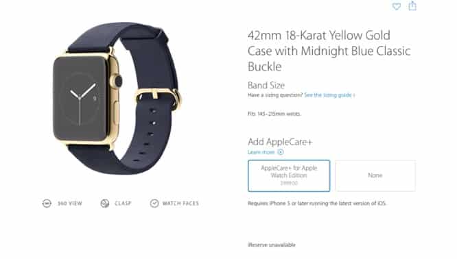 AppleCare+ for Apple Watch will be priced at $59 for the Sport model, $79 for the stainless steel Watch, and $999 for the gold Edition model, according to 9to5Mac and MacRumors. Both sites have alleged internal Apple screenshots of the pricing.