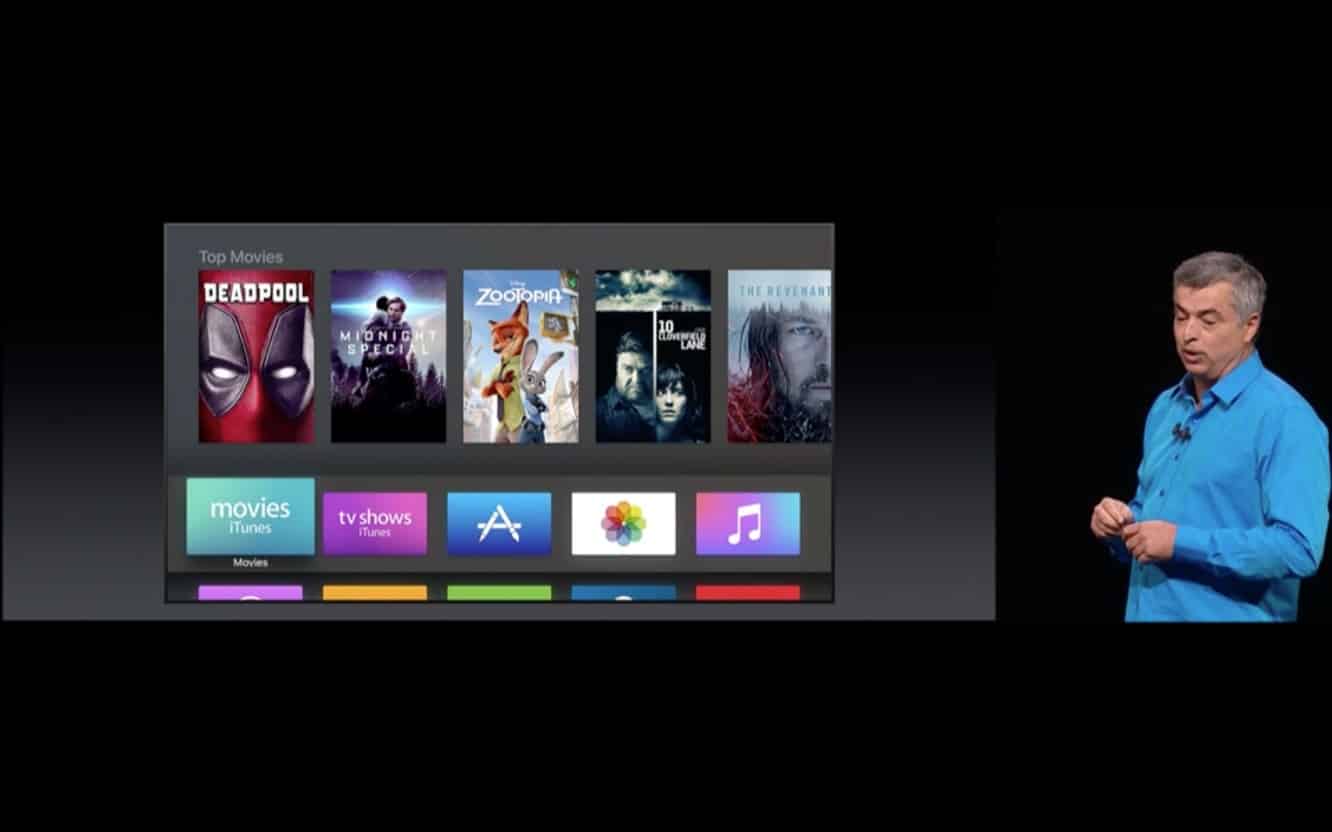 During this year’s Worldwide Developer’s Conference in San Francisco today, Eddy Cue, Apple’s SVP of Internet Software and Services, provided more details on its next-generation version of tvOS. While Cue conspicuously omitted any kind of version number, he highlighted key features in the next tvOS release, including a redesigned Apple Remote app for iOS that will provide the full capabilities of the Siri Remote, including voice control and accelerometer and gyroscope support for games, the ability to search movies and TV shows by topics, search YouTube using Siri, and expansion of the Live Tune-In feature added earlier this year to more channels.