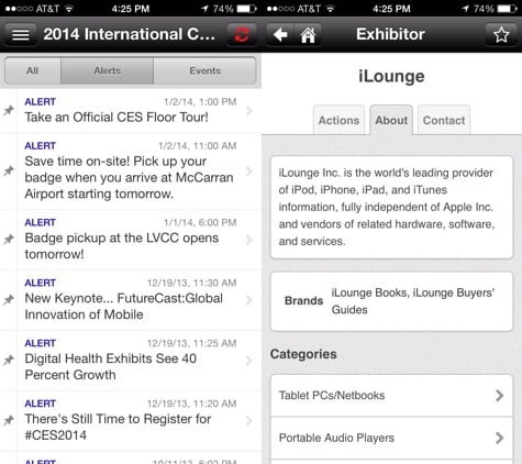 The Consumer Electronics Association’s free 2014 International CES app is devoted to next week’s Consumer Electronics Show. A list of exhibitors is featured, as are floor maps of the gigantic show. Events and keynotes are also listed, in addition to speakers and conference sessions. If you’re going, make sure to stop by the iLounge Pavilion.