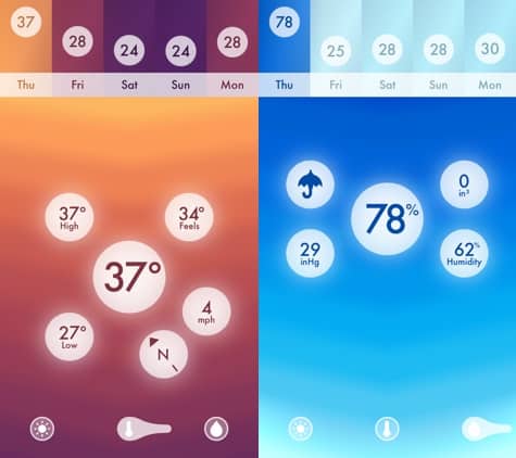 Robocat’s Haze ($1) is a new weather app with a clean, simple interface and nice animations. Features include motion tilt/slide navigation and a gyroscope-driven wind compass.
