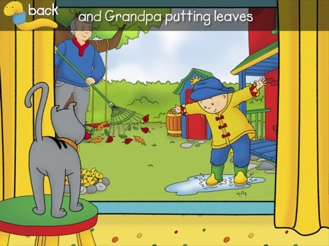 Parents of young children have a love-hate affair with the Canadian kids’ cartoon Caillou, featuring a relatable four-year-old boy and his two-year-old sister Rosie. While Caillou cartoons nicely touch upon common childhood themes, including role-playing, exploration, and parent-child interactions, the title character whines and pouts frequently enough to teach impressionable kids bad behaviors. Fingerprint’s new Step-by-Story – Caillou’s Window ($1) thankfully does away with the whining, but isn’t going to win the series any new fans, either. It lets kids choose very short pre-built or built-it-yourself stories featuring Caillou characters, stringing together five or so concepts to form a complete (if not particularly compelling) “story” like this one: (1) Outside, it was fall, (2) when Daddy saw (3) Caillou skiing and (4) Sarah (5) on a shooting star. Each of these clauses adds a simple, lightly animated foreground object to a flat background image while Caillou’s theme song plays and a narrator slowly enunciates the clauses. That’s it — though the art is high-resolution, it’s flat, and there’s no additional interactivity.