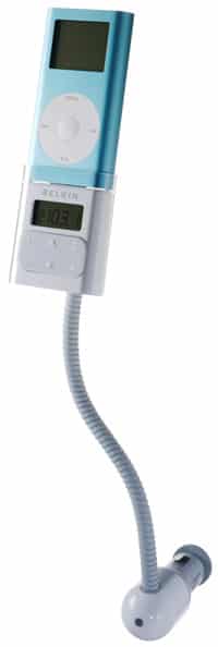 The TuneBase FM, which will begin shipping on November 22, also features an iPod mini holder with a flexible-steel neck that offers easy repositioning. While mounted in the TuneBase FM, your iPod mini charges and plays audio simultaneously.
