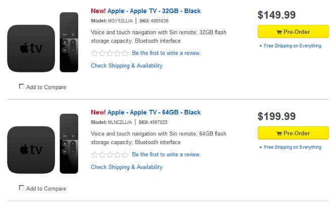 Best Buy’s U.S. website is now accepting preorders for the new Apple TV, listing a release date of Nov. 4 for in-store pickup and offering free shipping for those who don’t want to visit a store.