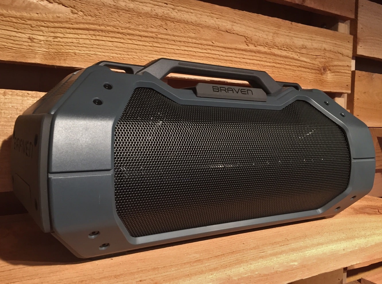 The Braven 105 is a palm-sized Bluetooth speaker that provides up to 8 hours of power on a single charge and can fit into most pockets or hang on a bike or strap of a backpack.