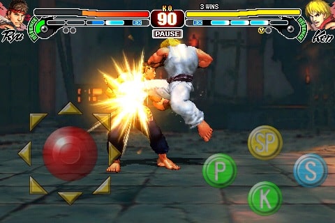Familiar moves such as Unique Attacks, Special Moves, Focus Attacks, Super Combos and Ultra Combos are all present, and the game provides a “Dojo” mode to introduce new players to the game’s moves and features. In addition to the standard single-player mode, players can choose to compete against other iPhone and iPod touch users over Bluetooth in a two-player head-to-head mode.