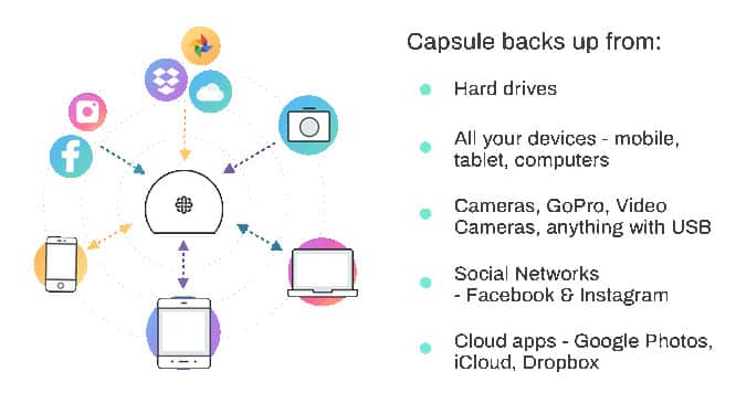 The Capsule has no on-board storage, so it will require an external hard drive to function, but the device accumulates and organizes photos from a much wider range of sources than other devices and cloud services with no monthly fee attached.
