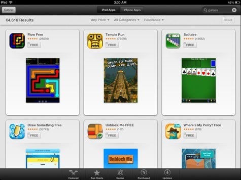 The new Chomp-inspired App Store search features a considerably larger tile-based display of results, making comparatively poor use of both small and large iOS device screens, a point that has already inspired complaints from some App Store developers. Notably, the redesigned App Store features remain in beta form and subject to considerable change before iOS 6 is released next month.