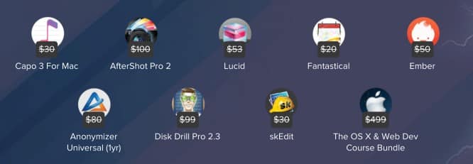 In this bundle you get Capo 3 for Mac, AfterShot Pro 2, Lucid, Fantastical, Ember, Disk Drill Pro, skEdit, and a one-year subscription to Anonymizer Universal.