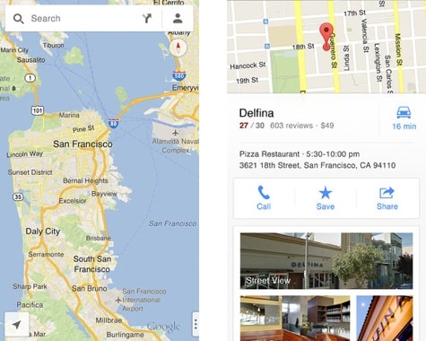 Google Maps features Google’s local search, vector-based maps, voice guided turn-by-turn navigation, public transit directions, Street View, imagery inside 100,000 businesses worldwide, walking directions, live traffic information, and more. Developers can embed Google Maps into their applications using the new Google Maps SDK for iOS, and a URL scheme allows Google Maps to be launched from any iOS app or web application, giving third-party developers options for circumventing Apple’s Maps.