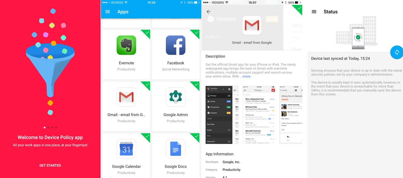 Google Apps Administrators will be able to use the Google Admin console to whitelist any free app found on the iOS app store, allowing a list of approved apps to be easily discovered and downloaded by their organization’s users without having to scour the App Store or recall specific app names from an orientation session or employee handbook. Apps installed through the Google Device Policy app are also managed by the organizational policies and can be removed from a user’s device when no longer whitelisted, or when a device is remotely wiped by an admin, ensuring that corporate information is not retained on personal devices when a user leaves the organization.
