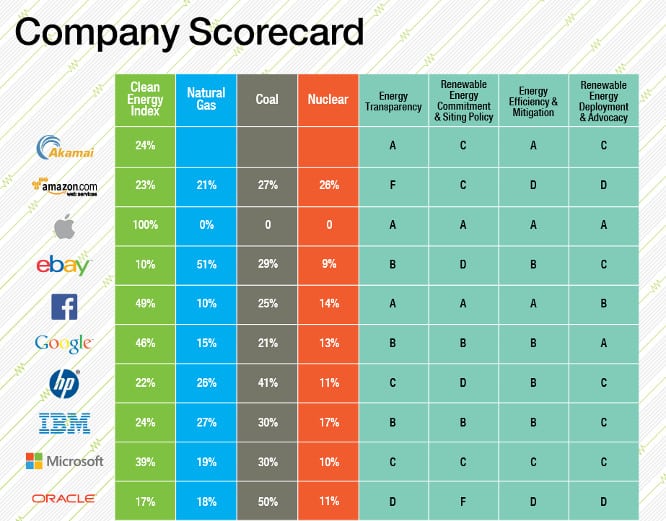 Apple was the only one of the 13 tech firms listed to score 100 percent on Greenpeace’s Clean Energy Index and earn “A” rankings across the board for energy transparency, efficiency, policy and advocacy, placing the company head and shoulders above others in the industry. Apple was also praised for pushing affiliated companies to adopt cleaner energy standards, since much of Apple’s environmental impact comes from third-party suppliers.