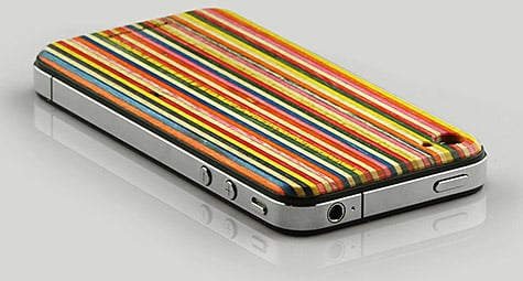 Made from 100% post-industrial skateboard material left over during the manufacturing process, the SkateBack attaches to the rear of the iPhone via peel-and-stick 3M adhesive, and has precision-cut holes to allow for access to the rear camera and flash.