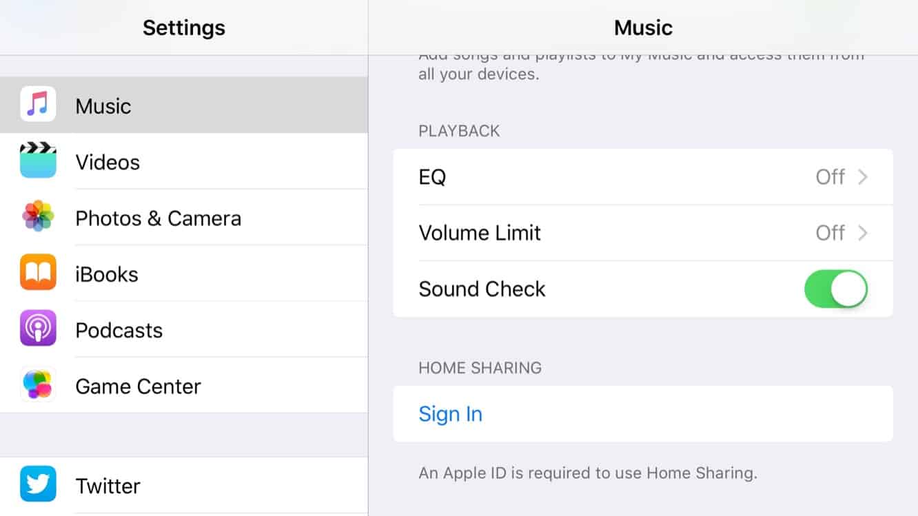 iOS 9 beta 4, released earlier today, returns the Home Sharing option under Music in the iOS 9 Settings app, although the feature doesn’t yet appear to yet be implemented in the actual Music app.