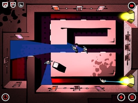 As Third Eye Crime progresses, more factors are added to the gameplay. Rothko can set off transponders to lure guards into other areas of the map, alarms can be triggered, and guards with guns soon make an appearance. There’s also a few powerups at Rothko’s disposal — for instance, the screen can be frozen, or he can use a speed burst.