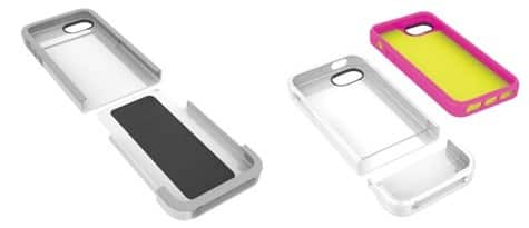 Meta Slider, available in white/gray or black/slate, is a two piece design with a microsuede cradle. It has a hardshell with a molded rubberized frame and a raised bezel. Shock Slider, which comes in black or white/magenta, features a rubberized inner cover with PORON XRD lining that can be used as a standalone case.