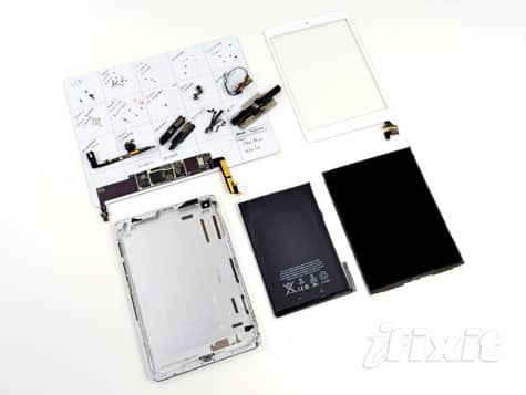 iFixit has conducted an iPad mini teardown, finding a Samsung LCD and confirming stereo speakers — making the iPad mini the first handheld iDevice to have stereo speakers. It’s noted that though the teardown unit uses a Samsung LCD, some other iPad minis likely use different manufacturers. The battery is marked with confusing labels — it’s marked as a 3.72V, 16.5 Watt-hour, 4400 mAh battery.
