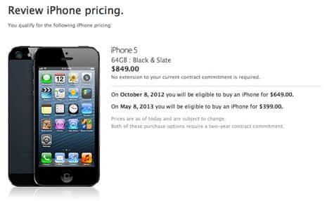 E-mails offering that opportunity began to go out by 12:35am PT, and were processed properly at that point. Notably, iPhone 4S customers have discovered that they are not eligible for discounted or fully subsidized iPhone 5 pricing, with October 8 of this year as the earliest date for discounts, and May 8, 2013 for full subsidized pricing. iPhone 5 unlocked and off-contract pricing remains the same as for the iPhone 4S: $649 (16GB), $749 (32GB), or $849 (64GB).