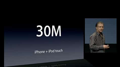 Over 30M Devices. Apple disclosed that 17 million iPhones and over 13 million iPod touches have been sold so far, for a total of over 30 million iPhone OS devices.