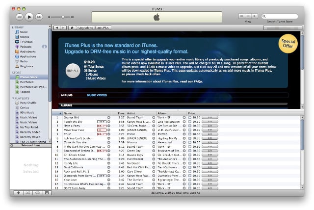 Apple is now allowing iTunes Store customers to upgrade previously-purchased DRM-encoded tracks to the higher-quality, DRM-free iTunes Plus format on a track-by-track basis.