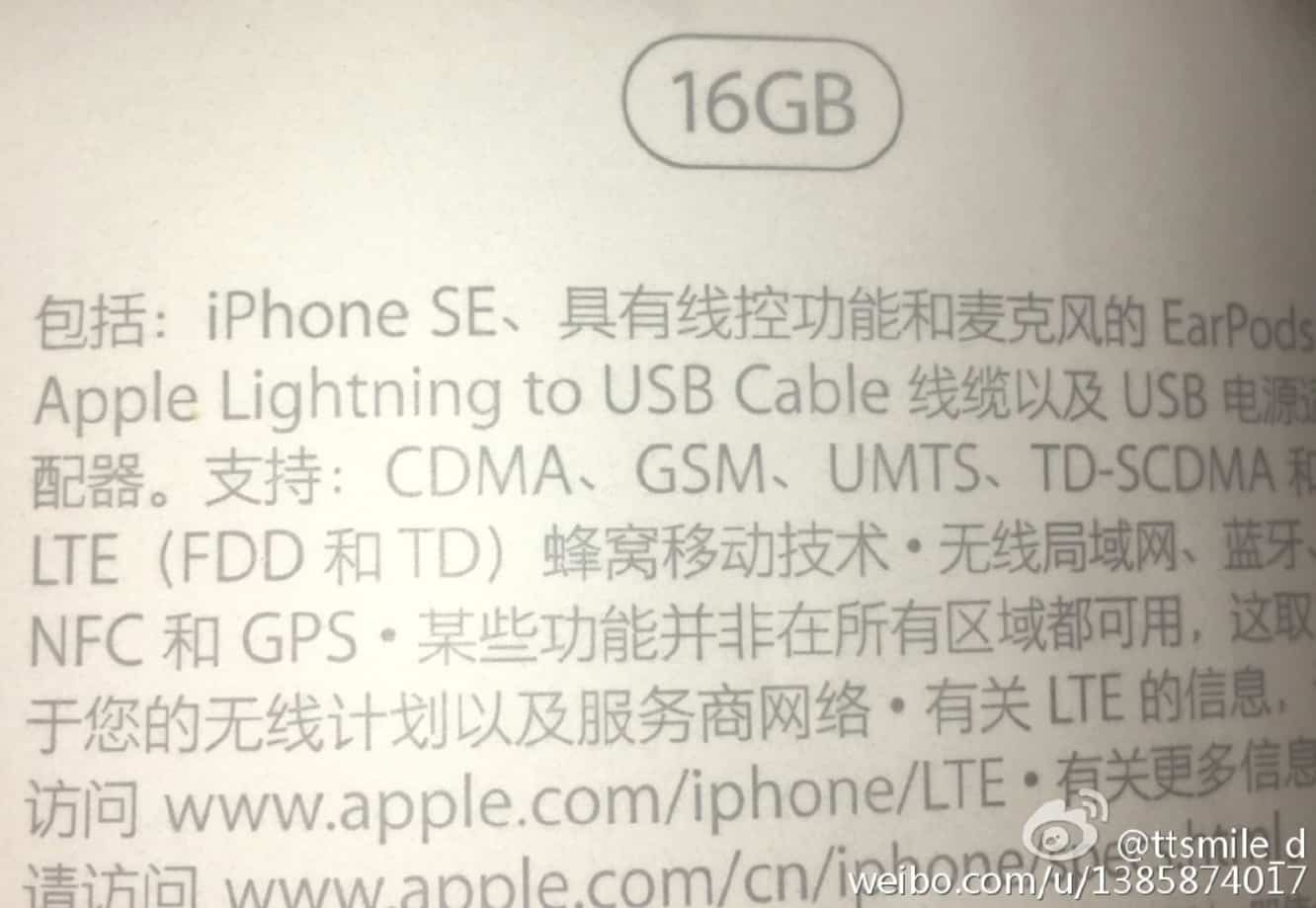 A photo posted on Chinese site Weibo shows an alleged spec sheet for the four-inch iPhone, which appears to confirm that the upcoming model will indeed be named the “iPhone SE” as expected, and that a 16GB capacity model will be available.