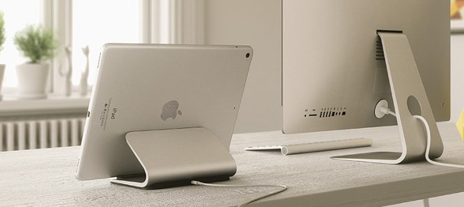 Three male Smart Connector prongs on the front of the stand fit into the tablet and deliver power while it’s resting on the stand. Magnets in the charging cradle guidethe device into place to align with the Smart Connector, providing an easier means to charge the device during use than plugging in the accompanying Lightning cable. At $100, the Logi BASE is more expensive than other stands, but is the only one (so far) to offer its unique charging solution.
