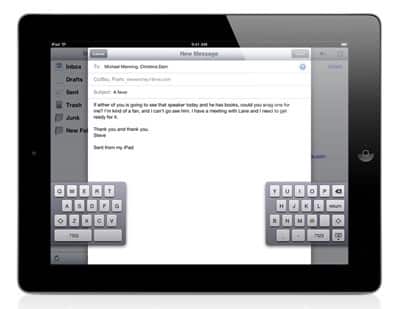 A third interesting feature was briefly previewed: a new iPad “split keyboard” that lets users rely on their thumbs or fingers on opposite sides of the screen for typing. Swiping down with four fingers will bring up the keyboard, which includes roughly half of its smaller-sized keys on each side of the screen, and can be repositioned upwards or downwards as you prefer.