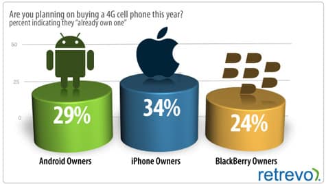 Retrovo’s latest Gadgetology Report found that 34 percent of iPhone owners reported that they “already own one” when asked if they were planning to purchase a 4G-capable handset this year.